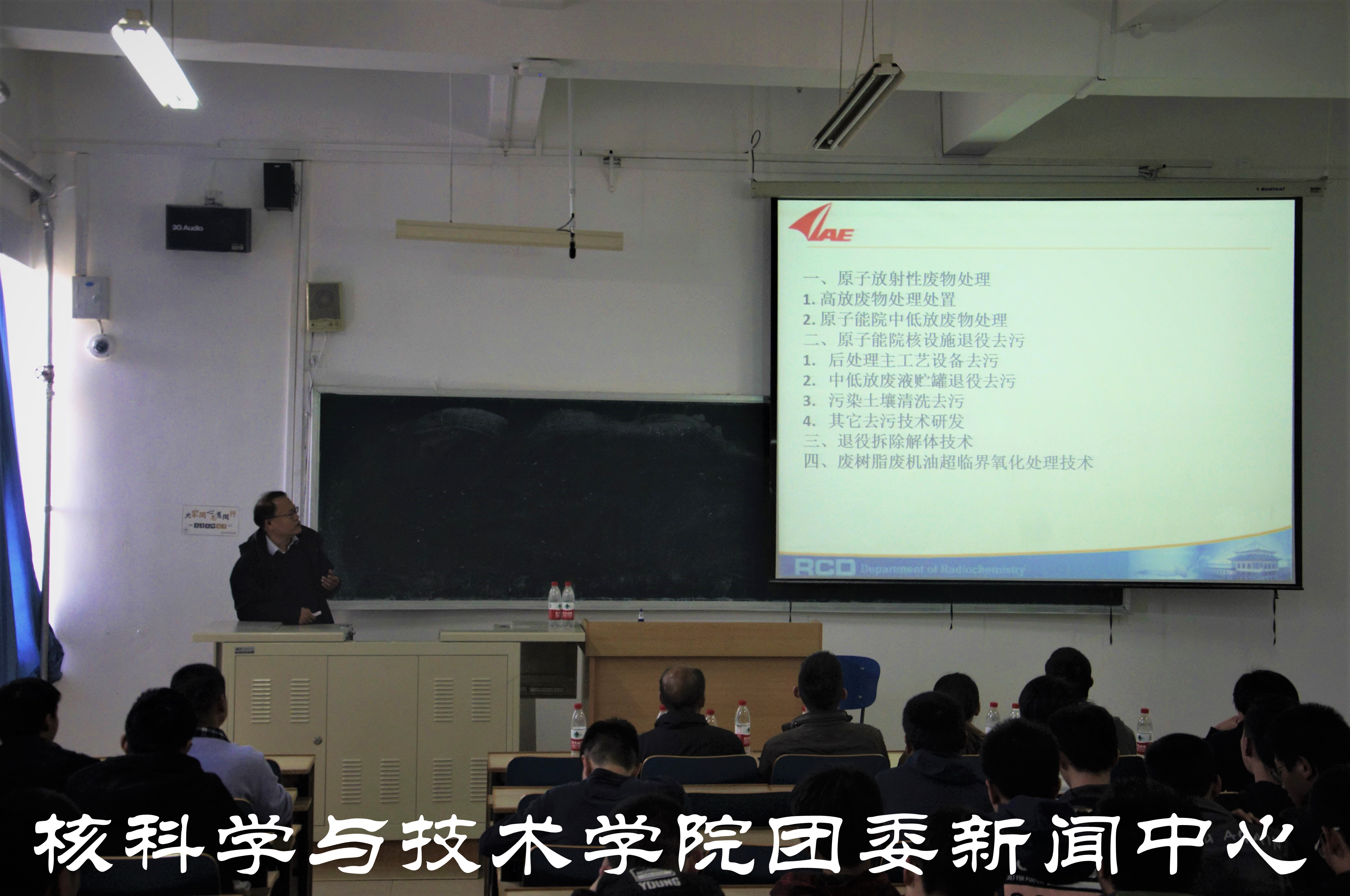 2019年4月10日星期三下午16点整,来自中国原子能科学研究院放射化学研究所的郑佐西研究员于必赢网址bwi437榆中校区天山堂A602教室作了《原子能院放射性废物处理处置和核设施退役去污研究现状》的专题学术报告。